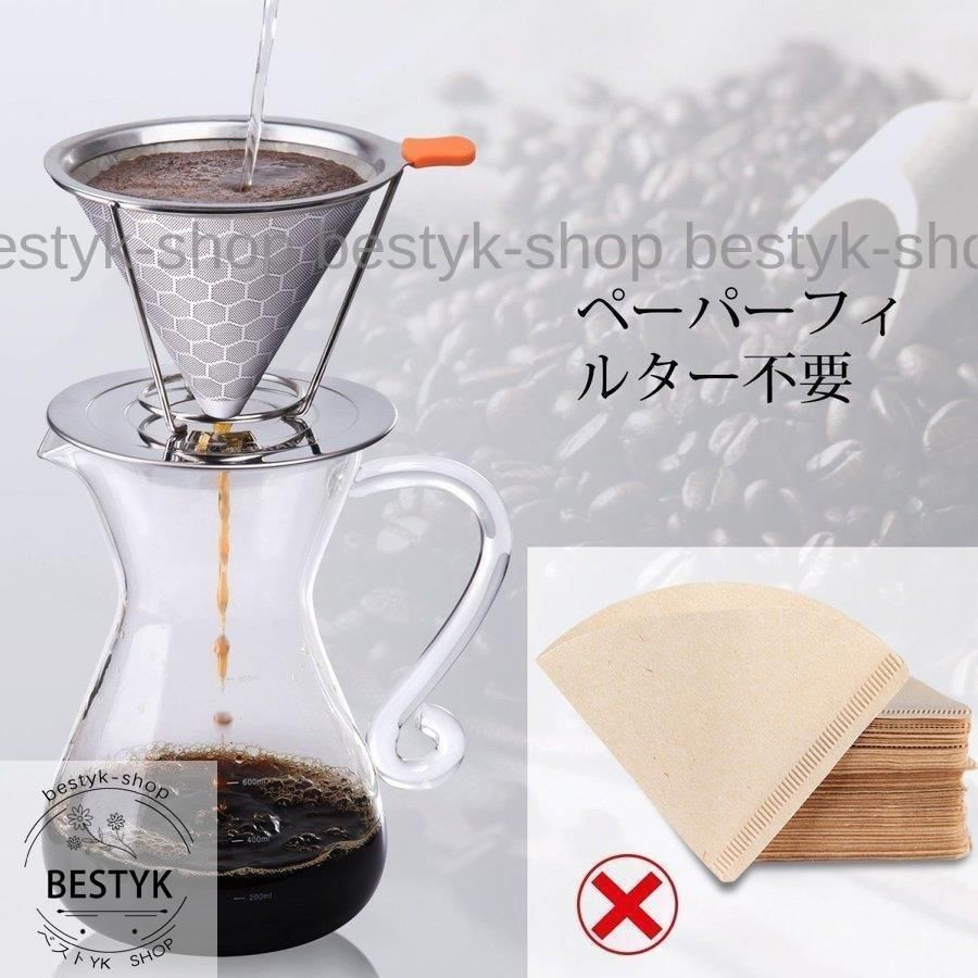 コーヒードリッパーステンレスフィルター蜂窩状2層メッシュペーパーフィルター不要1 4杯用CYB 560