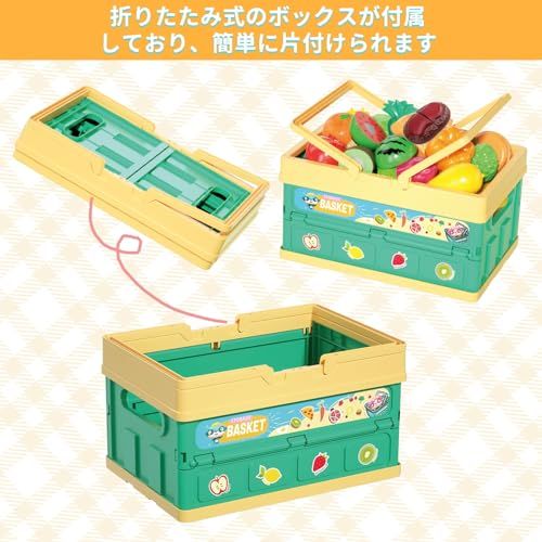 【超豪華、大量セット】寿司、野菜、果物、魚、エビ、カニ、沢山の調理器具、キッチン用具などいろいろあります。写真通りで色々な種類のおもちゃが入ってました!プラスチック製でとても軽くて。加えて、マジックテープ式、切る手応えの良い。収納用の折りたたみカゴ(片付けもしやすいです、遊びや整理がより簡単になる)。
