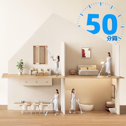 【500Wアップグレードモーター&65KPa超強力吸引】 最新のプグレードモーターを採用し、省エネ・長寿命・低騒音を実現。驚異の50KPa吸引力で床の微細なホコリ、ペットの毛、隙間ゴミまで一気に除去。従来機より吸引力が68%アップし、サイクロン遠心分離で吸引持続率99%。軽量設計で女性や高齢者も片手でラクラク操作。コードレスだから家中を自由に移動でき、毎日の掃除がより快適になります。ご注意:充電中は掃除機は作動しません。充電ケーブルを抜いてから電源を入れてください。