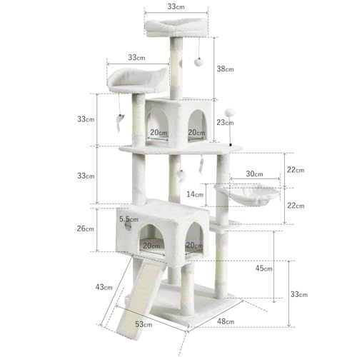 AIFY省スペース キャットタワー スリム 安定強化構造 大型猫用 多頭飼い 猫タワー 突っ張り 据え置き型 きゃつとタワー 猫爬架 ハンモック 見晴台 ねこハウス ボンボン 天然麻紐 粉が出にくい爪とぎ 運動不足解消 高さ170 cmp e 377397 d