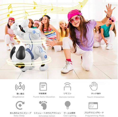 ロボット犬 子供おもちゃ タッチコントロール 音声制御 英語のみ スタントドッグ Robot 犬 ロボット プログラム 歩く ダンス ソング 甘える 怒る USB C充電式内蔵バッテリー 電子ペット 女の子 男の子のおもちゃ 小 7 bad 42 d 6