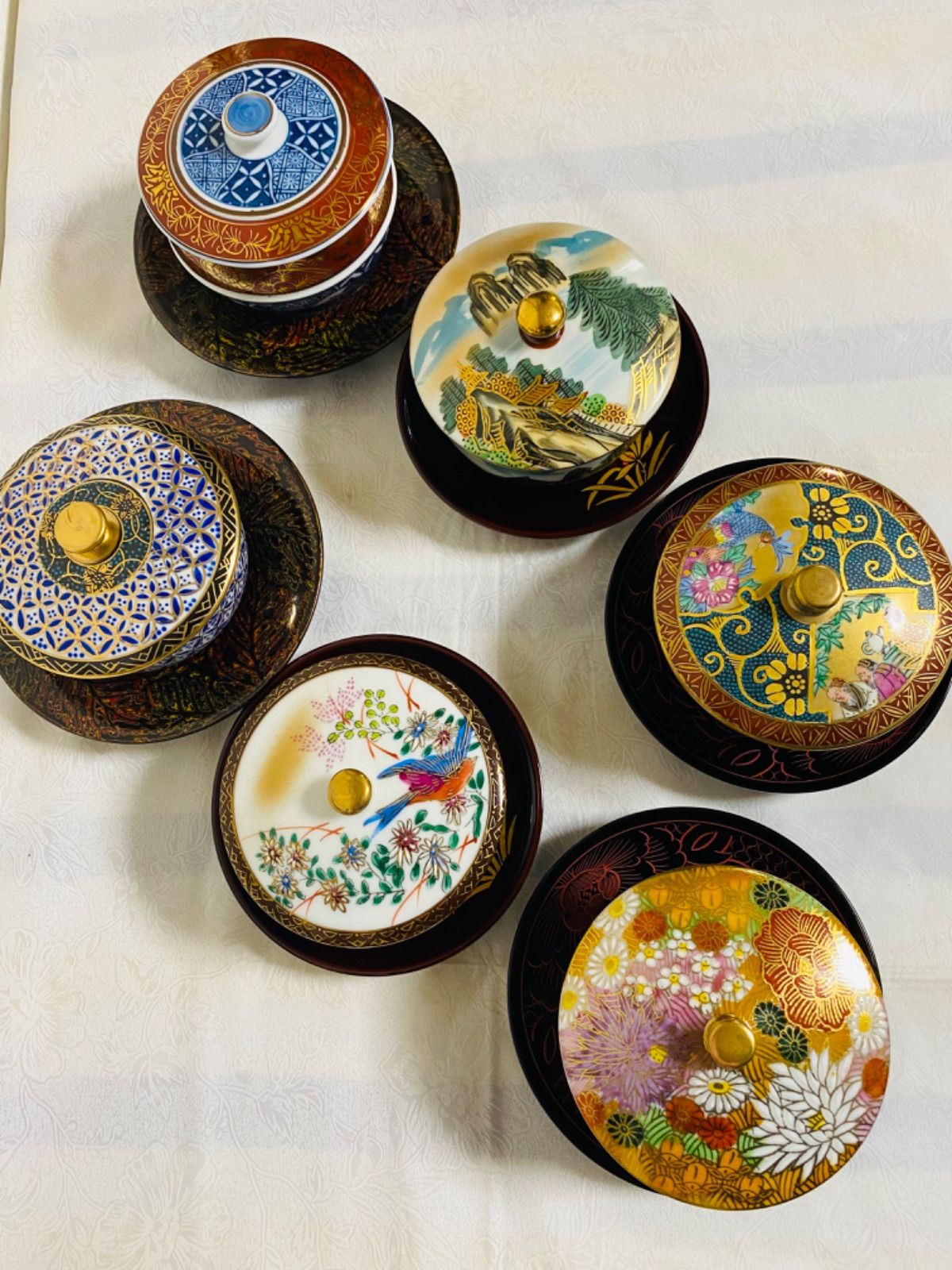 九谷焼の蓋付き湯呑み6脚セットとなります☆