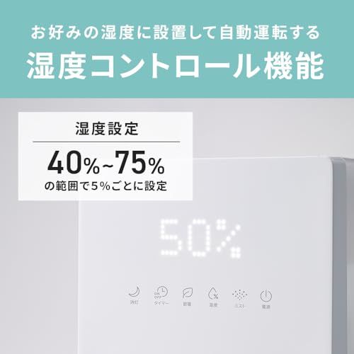 湿度コントロール機能付(4075%範囲)と5%毎に設定が可能なのでお好みの潤いを保ってくれます。