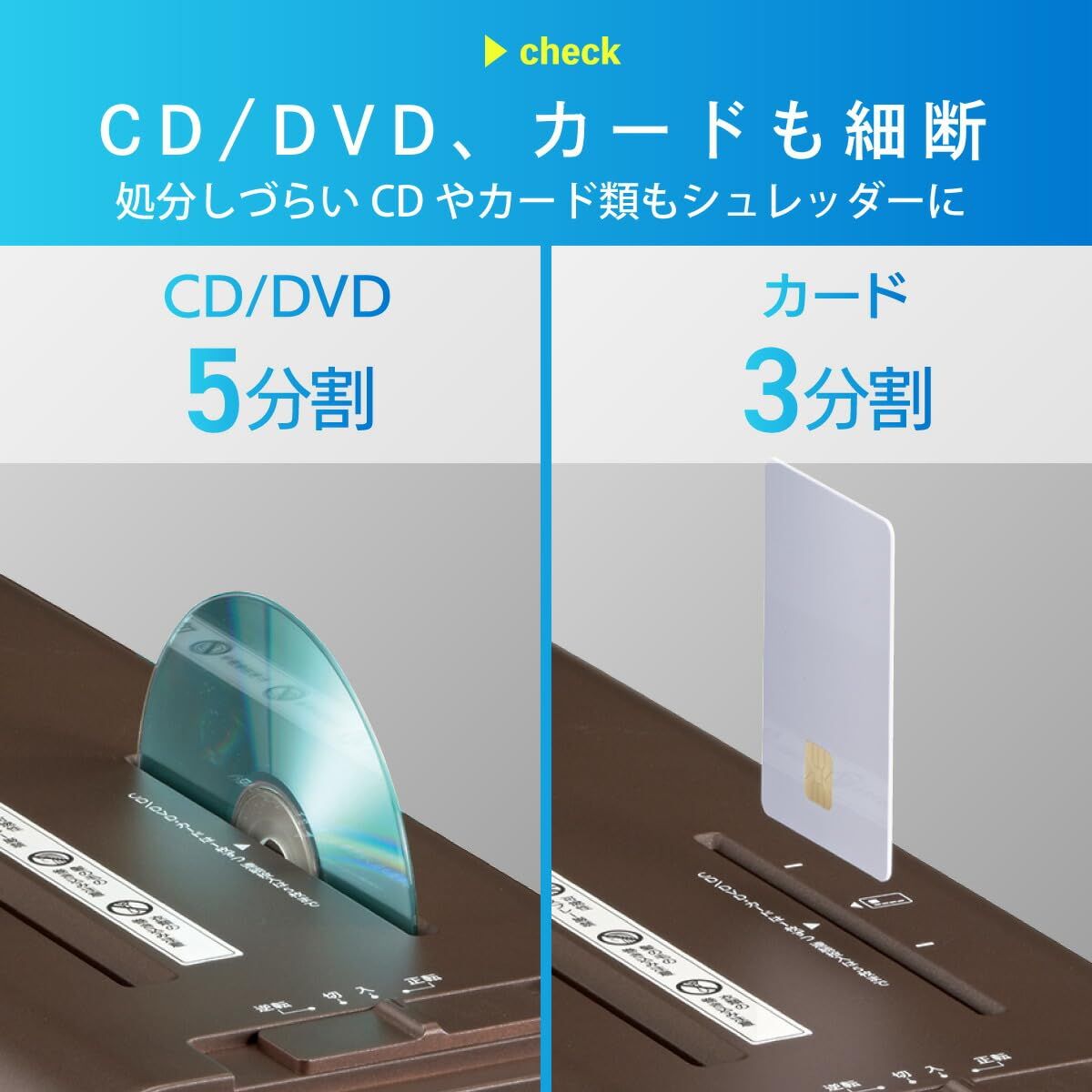 ■ 最大細断枚数:紙…A4コピー用紙(64g/m2)5枚、CD/DVD・カード…1枚