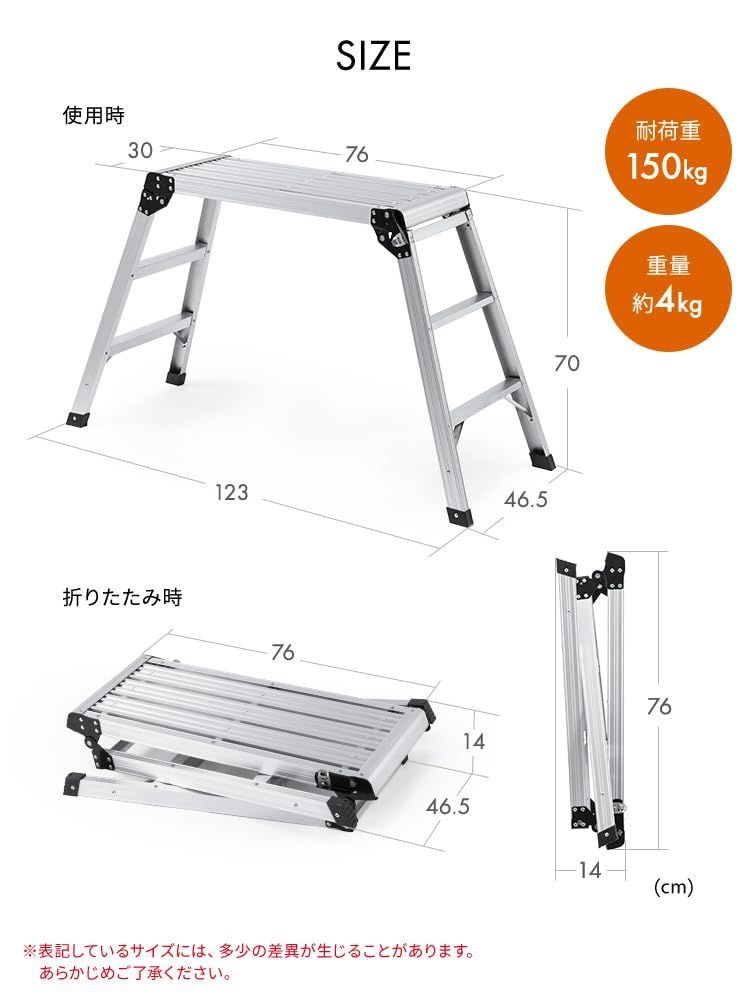 【高さ70cmで快適な作業環境を実現】アルミ足場台で高い場所の作業を効率化!DIYやリフォーム、屋内外作業、さらにミニバンの洗車にも最適です。
