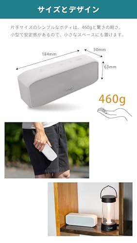 【人気のbluetoothスピーカー】bluetooth(ver.5.3)を搭載した小型のポータブルスピーカーです。お手持ちのスマートフォン、パソコンと接続してワイヤレススピーカーとして使用できます。【クリアな音声】低音域から高音域まで、幅広い音を表現できるフラットな周波数特性。音のひずみを抑え、こもりにくさにこだわった音質です。一つひとつの音がクリアで聴き取りやすく、歌詞やセリフなどがよく通ります。