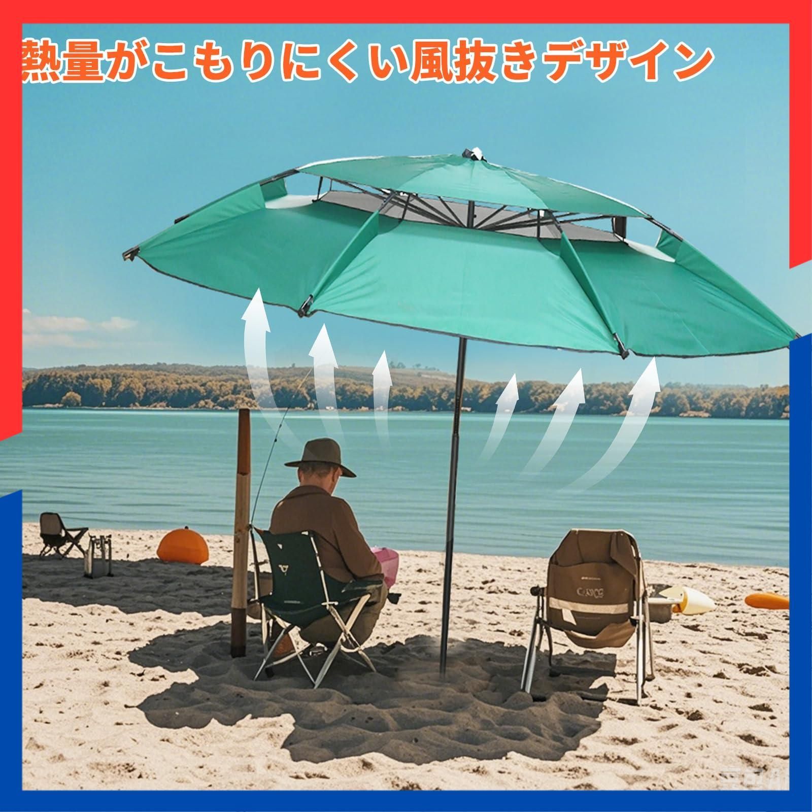 パラソル 大型 釣り傘 ビーチパラソル 2.2m 風に強い 日除け UVカット 暑さ対策 高さ調節可能 角度調整可能 チルト機能 防水・撥水 持ち運び 軽量 アウトドア用パラソル フィッシングパラソル 収納バッグ付き