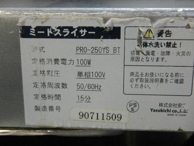 2015年製 業務用 ミート スライサー PRO 250 YS BT mm 100 V w テフロン刃250 手動 ハム 15 kg