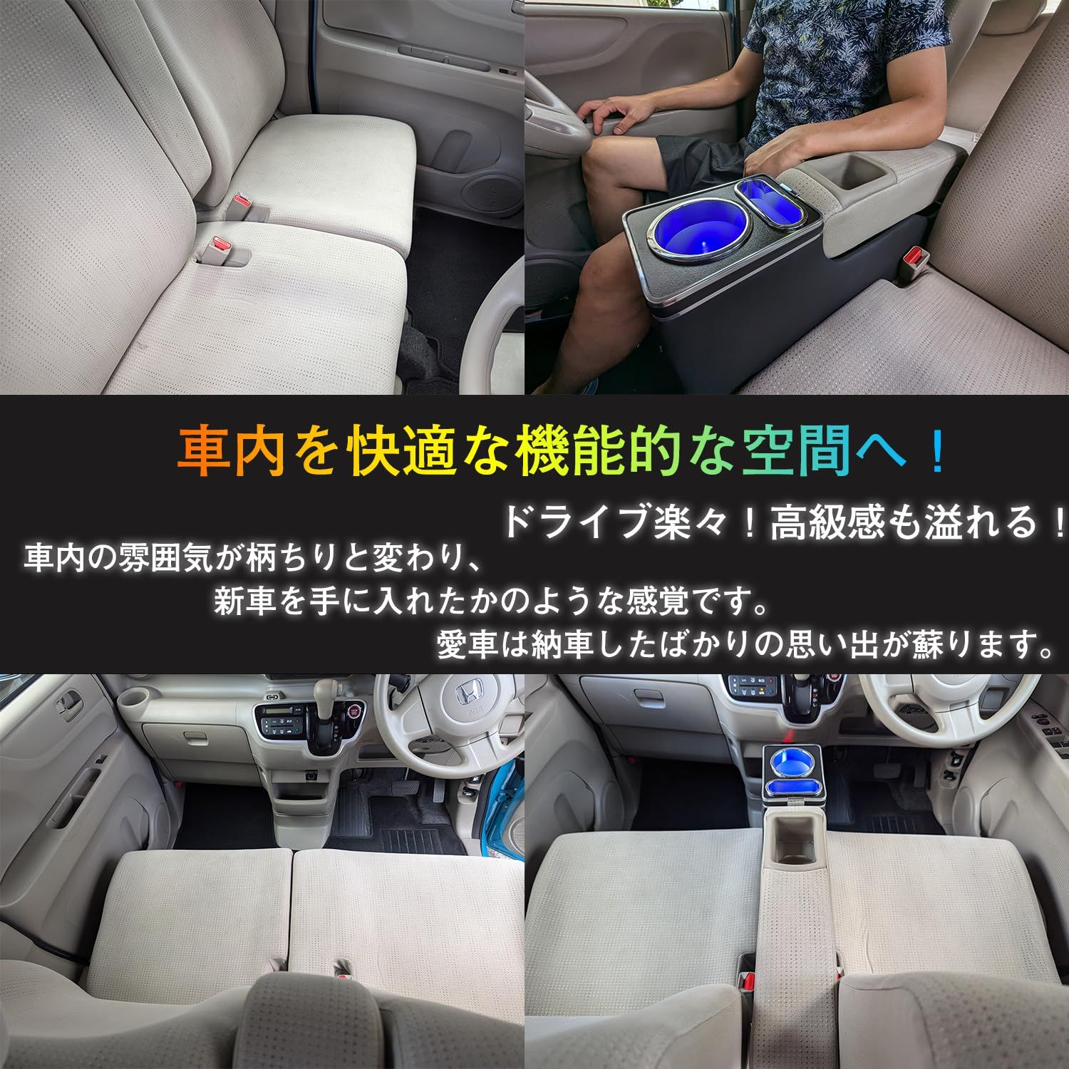Buy it N-BOX JF5 JF6 コンソールボックス - N-BOXカスタム JF3 JF4 JF5 JF6対応 車種専用設計 ドリンクホルダー、携帯ホルダー付き- 車内収納 (ブルーライト付き)