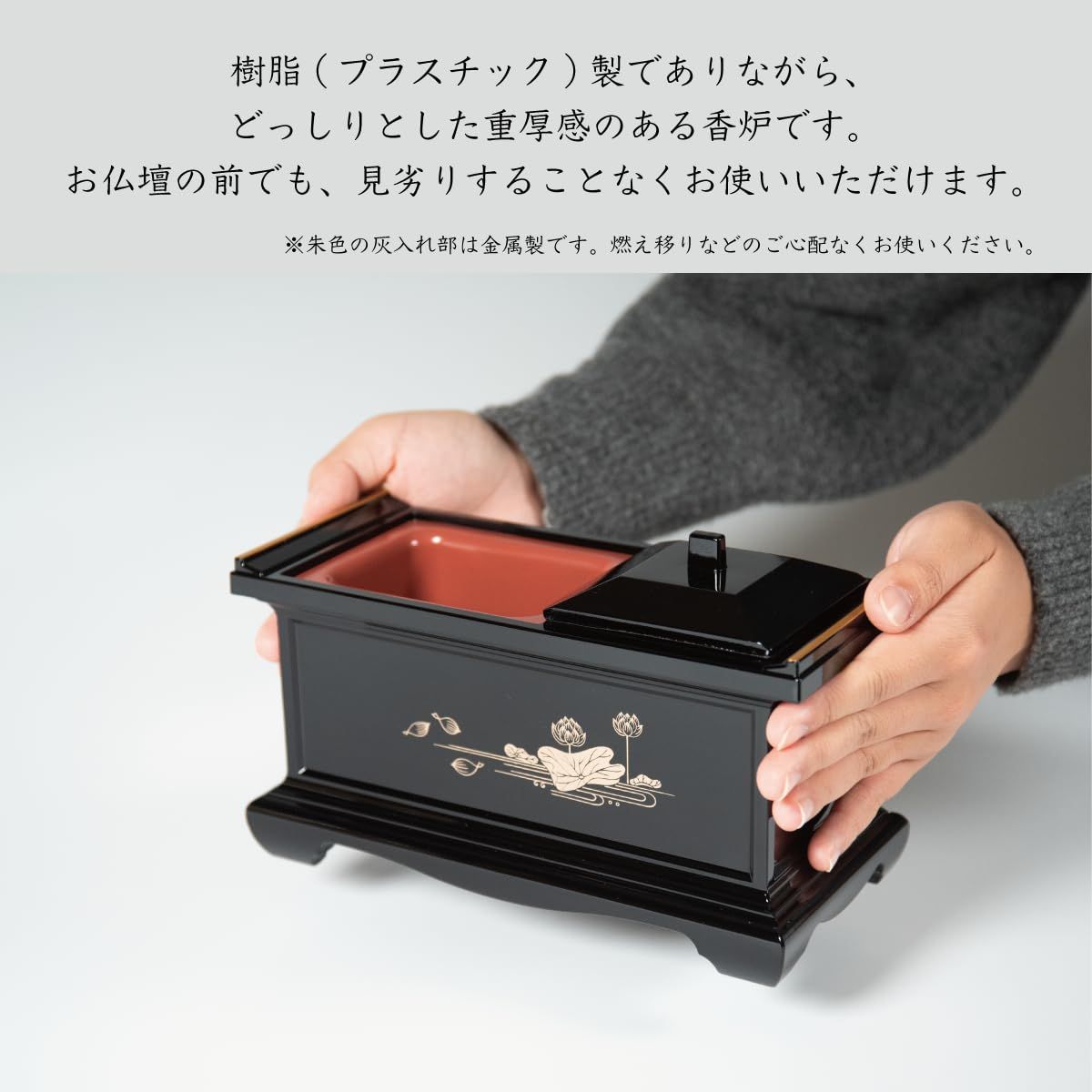 サンメニー 本格 お手軽 香炉 お焼香 山中漆器 日本製 お盆 お彼岸 法要 に 線香 焼香 インセンス 仏具 現代仏壇 お仏壇 黒 フチ金 蓮 線香立て お供え インセンスホルダー コンパクト 小さい 小物 仏具セット 幅23.1×長さ12.6×高さ10.9cm [Sunmany]