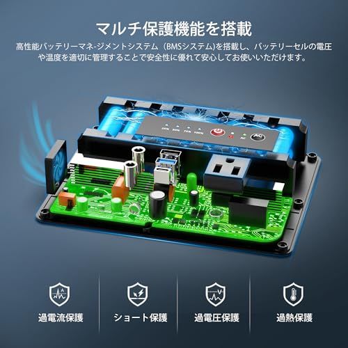 【バッテリー管理システム】 安全性を保証し、バッテリーの寿命を延ばすために、Powkeyはこの小型ポータブルパワーステーションにアップグレードされたBMS(バッテリー管理システム)バッテリー管理を採用しました。