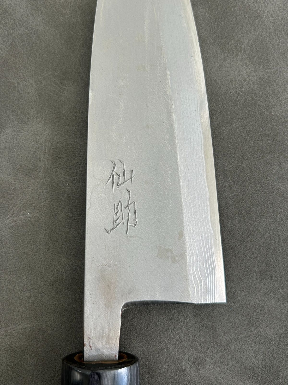 訳あり 仙助 包丁 出刃 ダマスカス 安来鋼青紙2号 165mm 紫檀シノギ柄 50