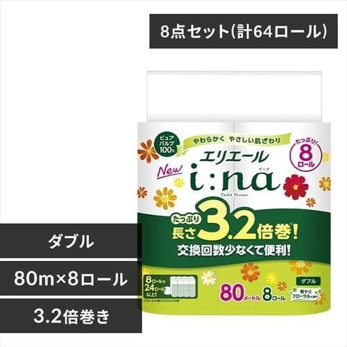 トイレットペーパー エリエール ダブル 3 2倍巻き 80 m 8ロール イーナ トイレットティシュー トイレットロール 香り付き 備蓄 D