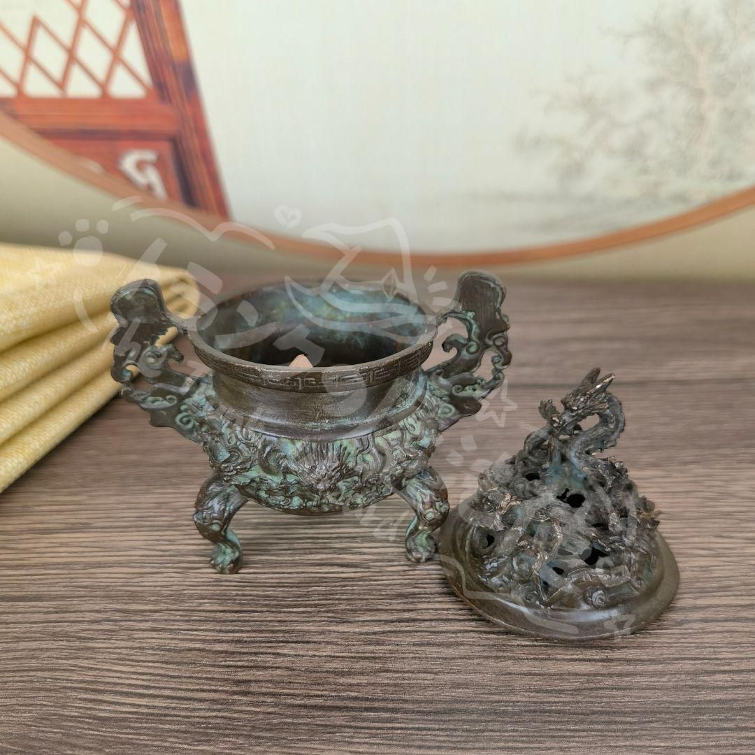 新年ギフト銅 細工 香道具 蓋置 竜紋炉 香炉 装飾品 工芸品 美術品 置物