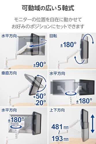 エレコム モニターアーム 17 49インチ対応 耐荷重20 kg ガススプリング式 VESA ロングアーム ワイドモニター対応 ホワイト DPA SL 07 WH c 0233851