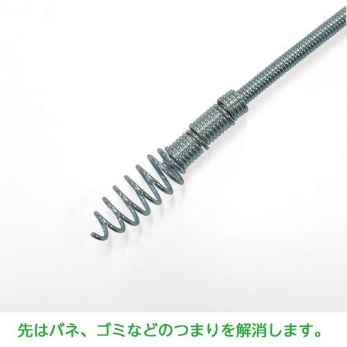 パイプや配管内のゴミなどの清掃に使用します。折れにくい2重巻構造で、螺旋状の頭部が汚れを粉砕し、パイプの奥まで入り込みます。ワイヤーの長さは15m。ゴミの詰まりを解消することで排水の流れをスムーズにします。手元が汚れにくいゴム製の水切り付き詳しい使用方法は商品画像欄にあります動画をご覧ください。流し、風呂、雨どいなどの排水パイプに使用します。