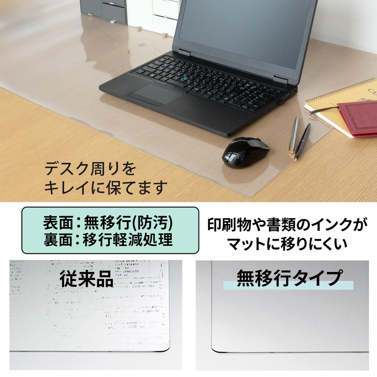 表面にフッ素ラミネートを施した汚れに強いデスクマット
