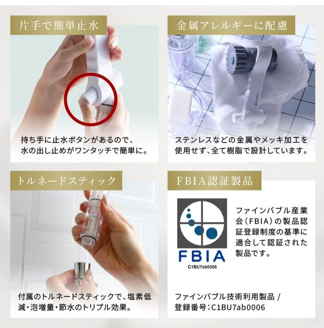 Mirable ミラブル zero ゼロ シャワーヘッド ウルトラファインバブル 節水 塩素低減 ミスト水流