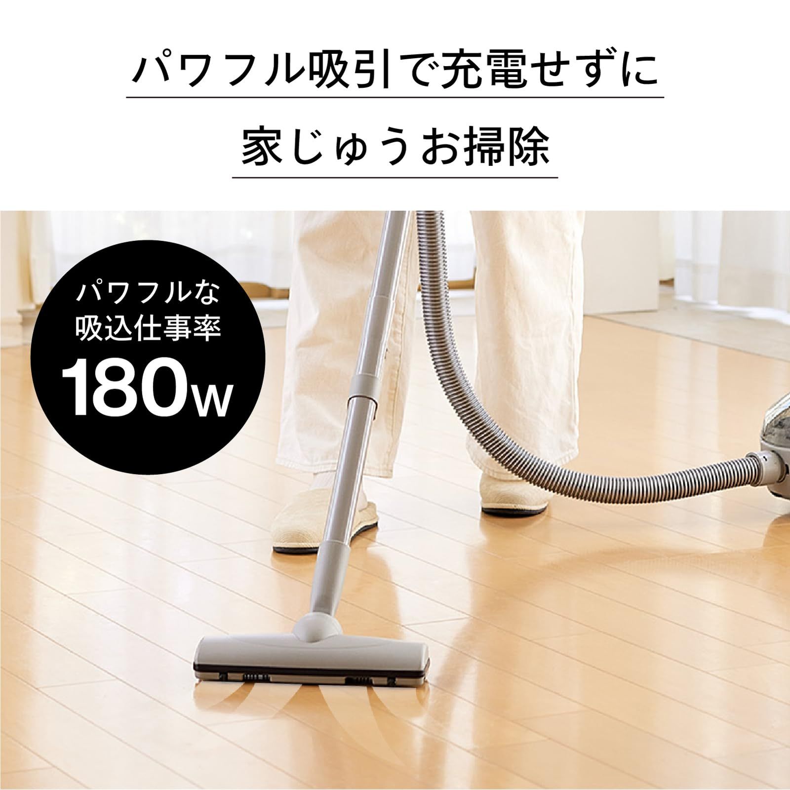 【パワフルな吸込仕事率180W】シンプルながらもしっかり働く、吸込仕事率180W。軽いので持ち運びも便利です。