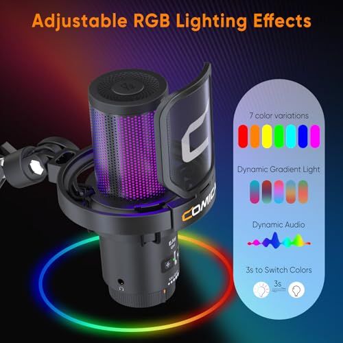 COMICA USBコンデンサーマイク ゲーミングマイク ブームアーム付き マイクセット 単一指向性 RGBライティング ノイズ軽減 ワンタッチミュート web配信 テレワーク ポットキャスト コンテンツクリエーター ストリーミング 109 e 8 b 0 d