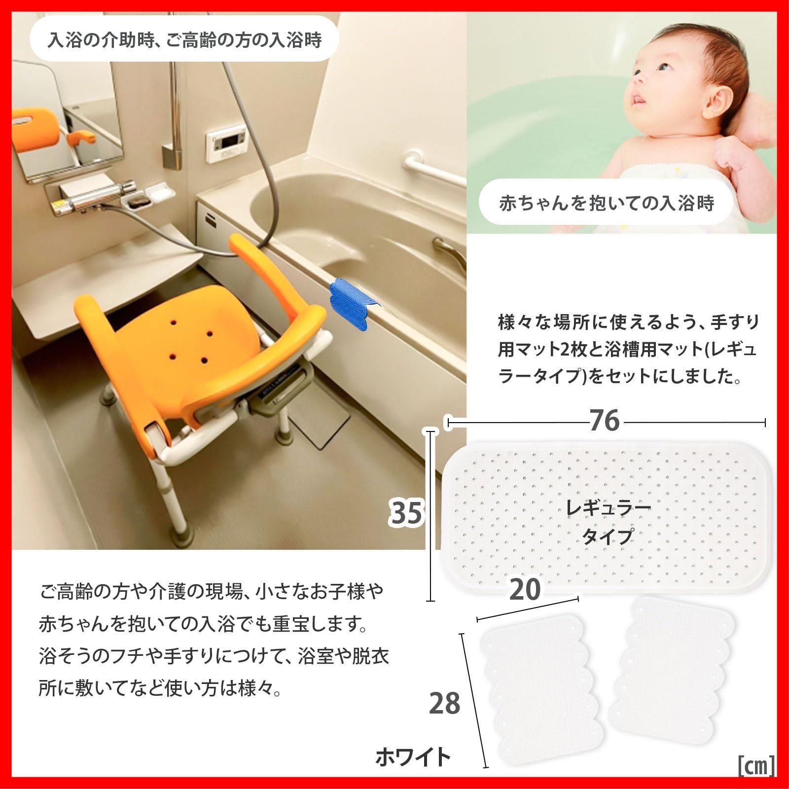 手すりマット 浴槽マット セット スベリを防ぐ 35 76 cm 滑り止め ホワイト 浴槽 浴槽内 お風呂 滑り止めマット