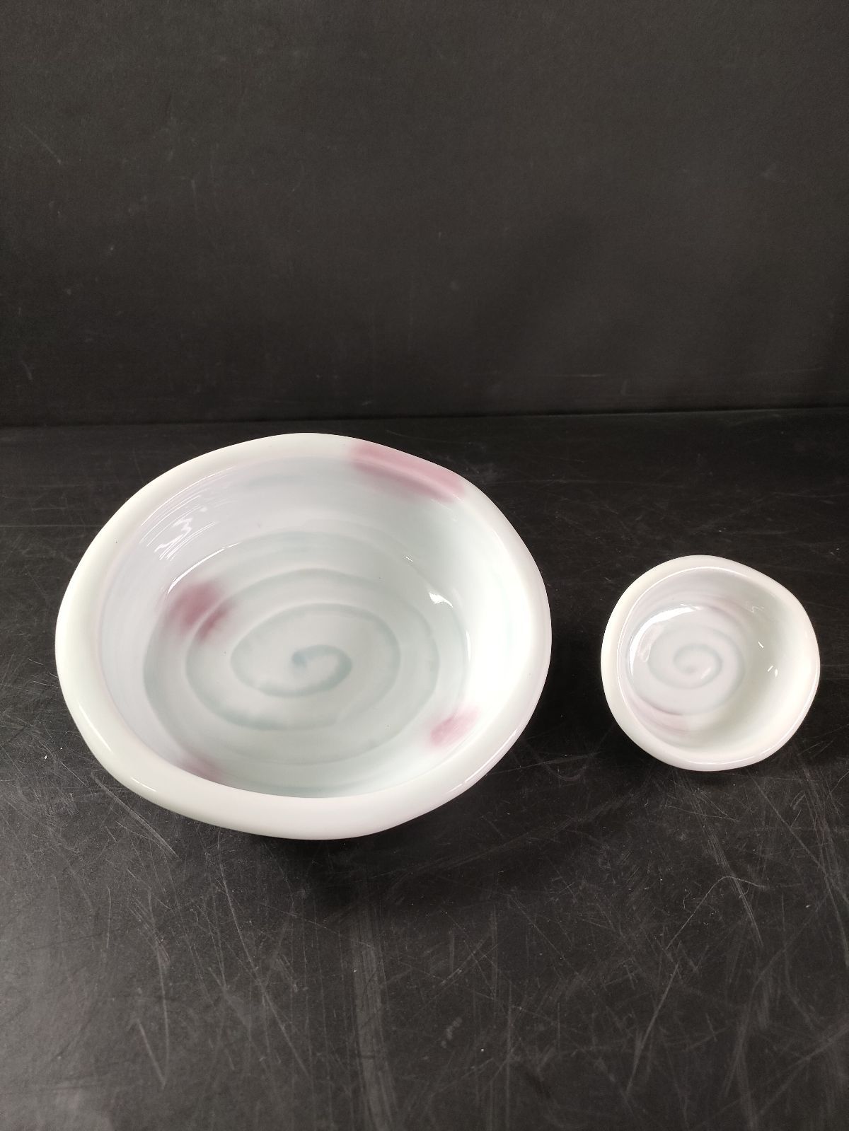 F 2 06 有田焼 瑞峯銘 青磁渦潮文鉢 大18客 小17客 菓子器 菓子鉢 飾鉢 飾皿 盛鉢 皿 和皿食器 向付 小皿 中皿 割烹