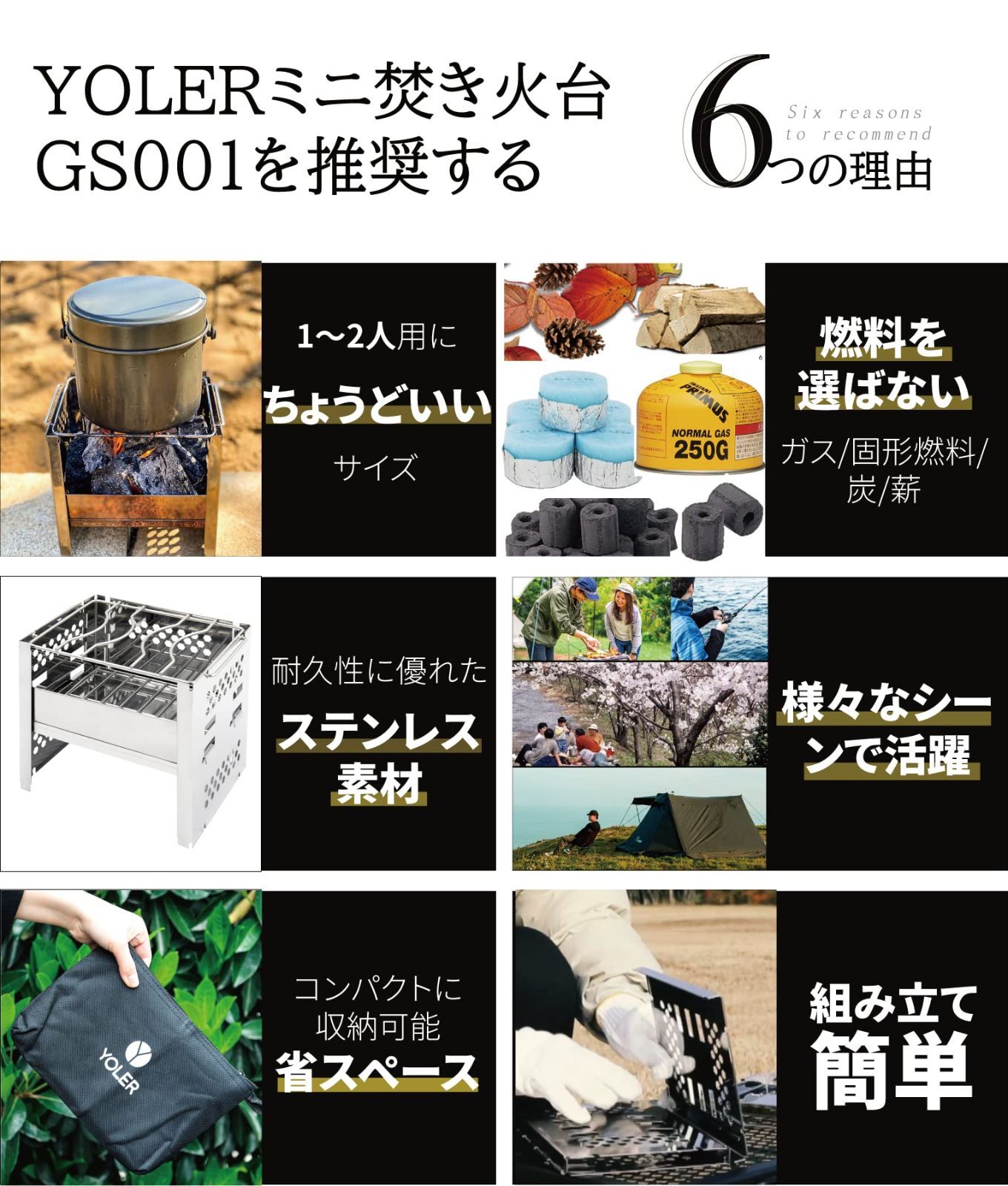 薪 ストーブ B 6より大きい 2段調節 アウトドア愛好者のプレゼント 1 2人用 1台多役 卓上コンロ 焚き火台 ソロキャン かまど アウトドア 釣り キャンプ コンパクト お花見 バーベキュー 折りたたみコンロ GS 001 ヨーラー YOLER