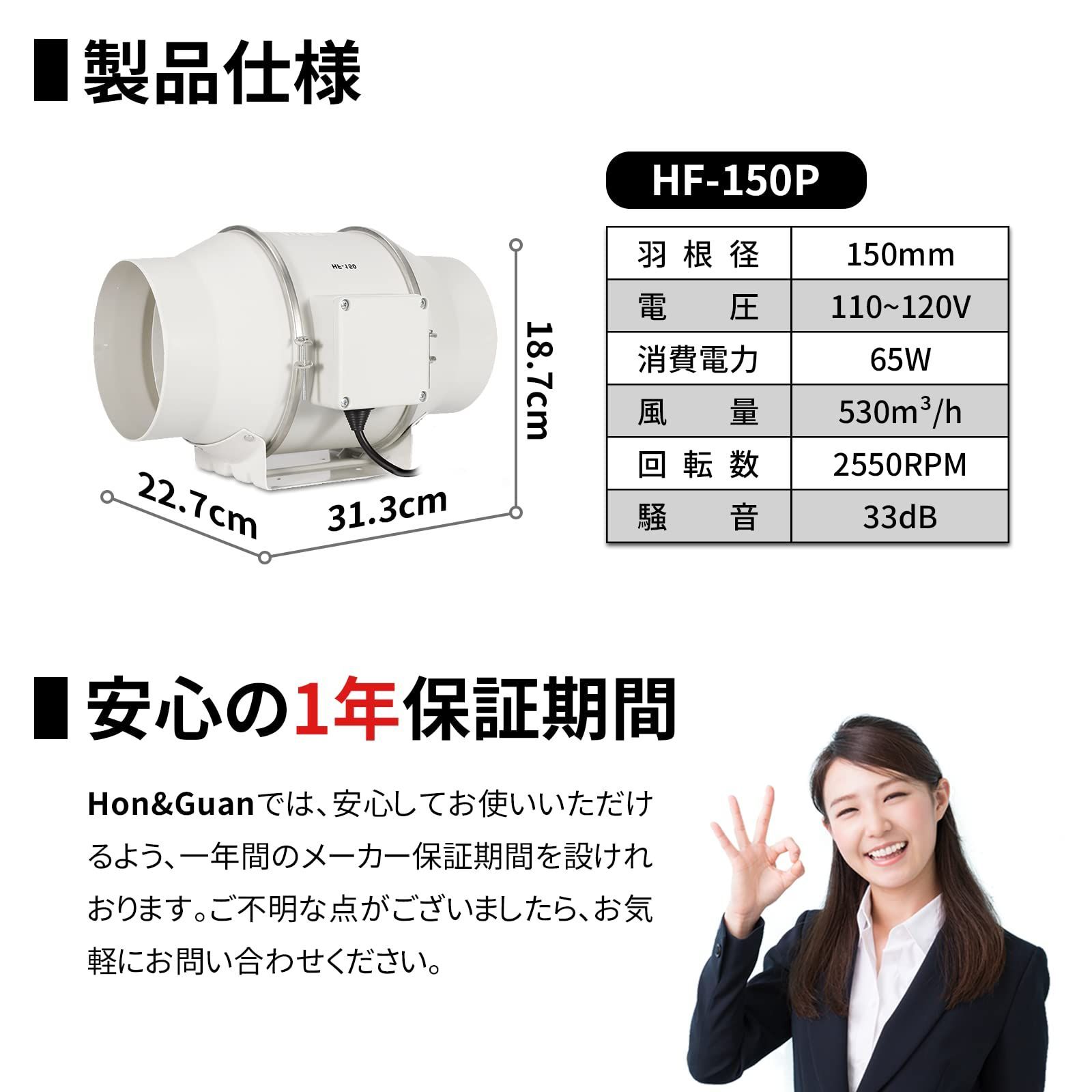 家焼肉 塗装ブース用 中間取付 ダクト用換気扇 静音 丸形タイプ 省エネ 強力 産業用換気扇 150 mm ダクトファン HF P Hon Guan