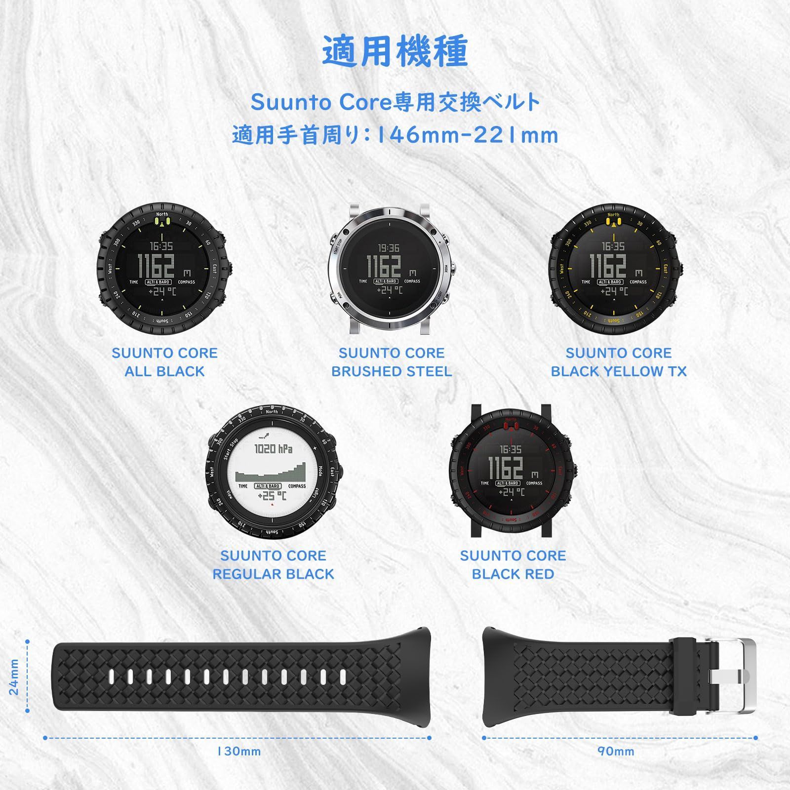 「スントコア専用ベルト」Suunto Core専用のソフトなシリコン交換ベルトになります。スポーツ向きに設計した仕様より、汗かきしにく、こもらなくいつも涼しく腕首につけられて快適なスポーツ時間を楽しめることができます。