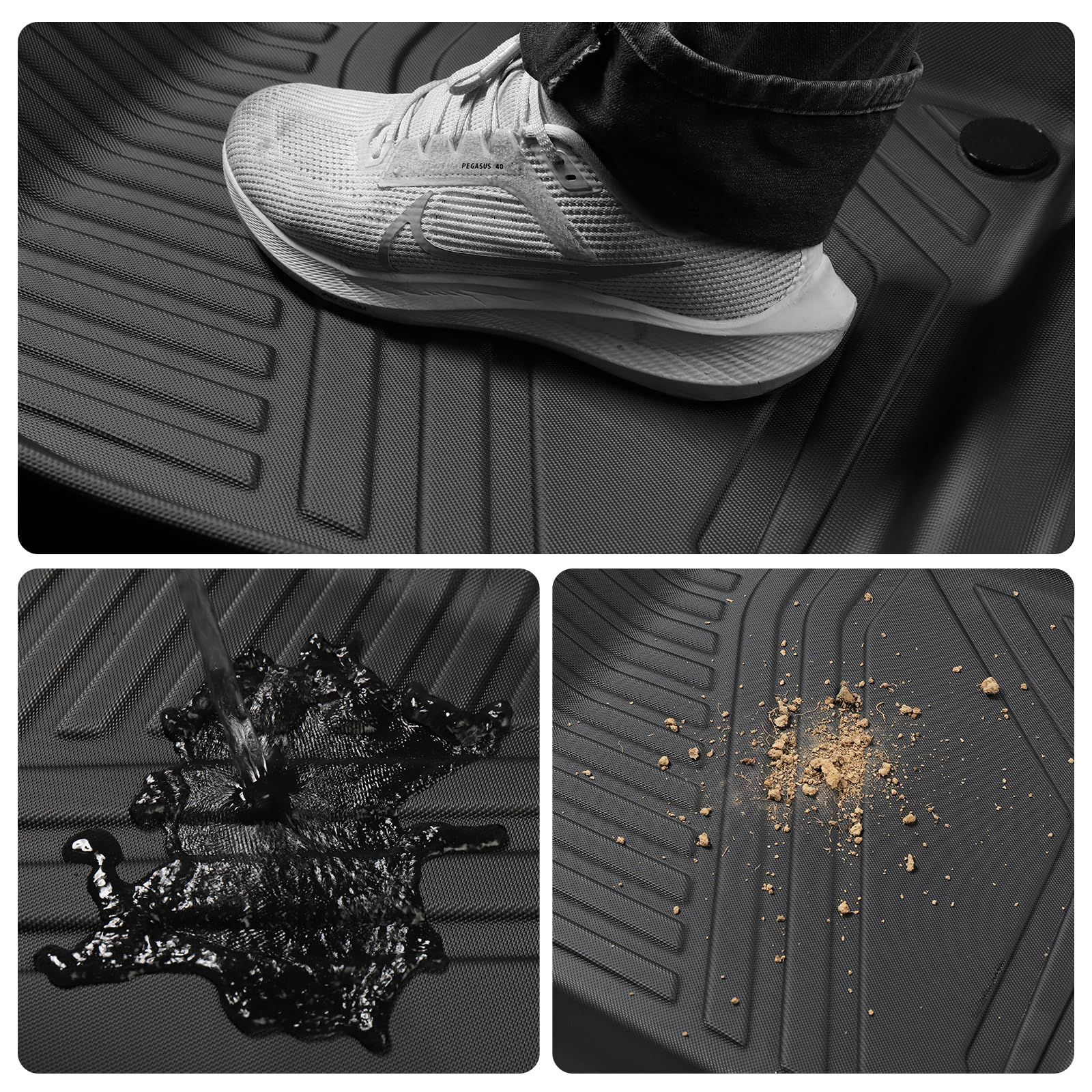 【3D立体構造】3D立体構造のお掛けで車が運転している途中でも、飲み物などが溢れっても水やジュースなどはフロアマットの外への侵入を防止します。車内を汚さずに運転したい方にはぴったりの3D立体車用フロアマットです。