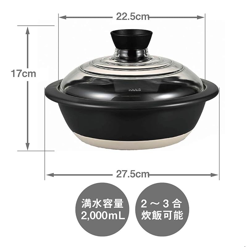 HARIO ハリオ フタがガラスの 土鍋 8号 2000 ml 中身が見える 耐熱ガラス 陶器 GDN 225 B W 0