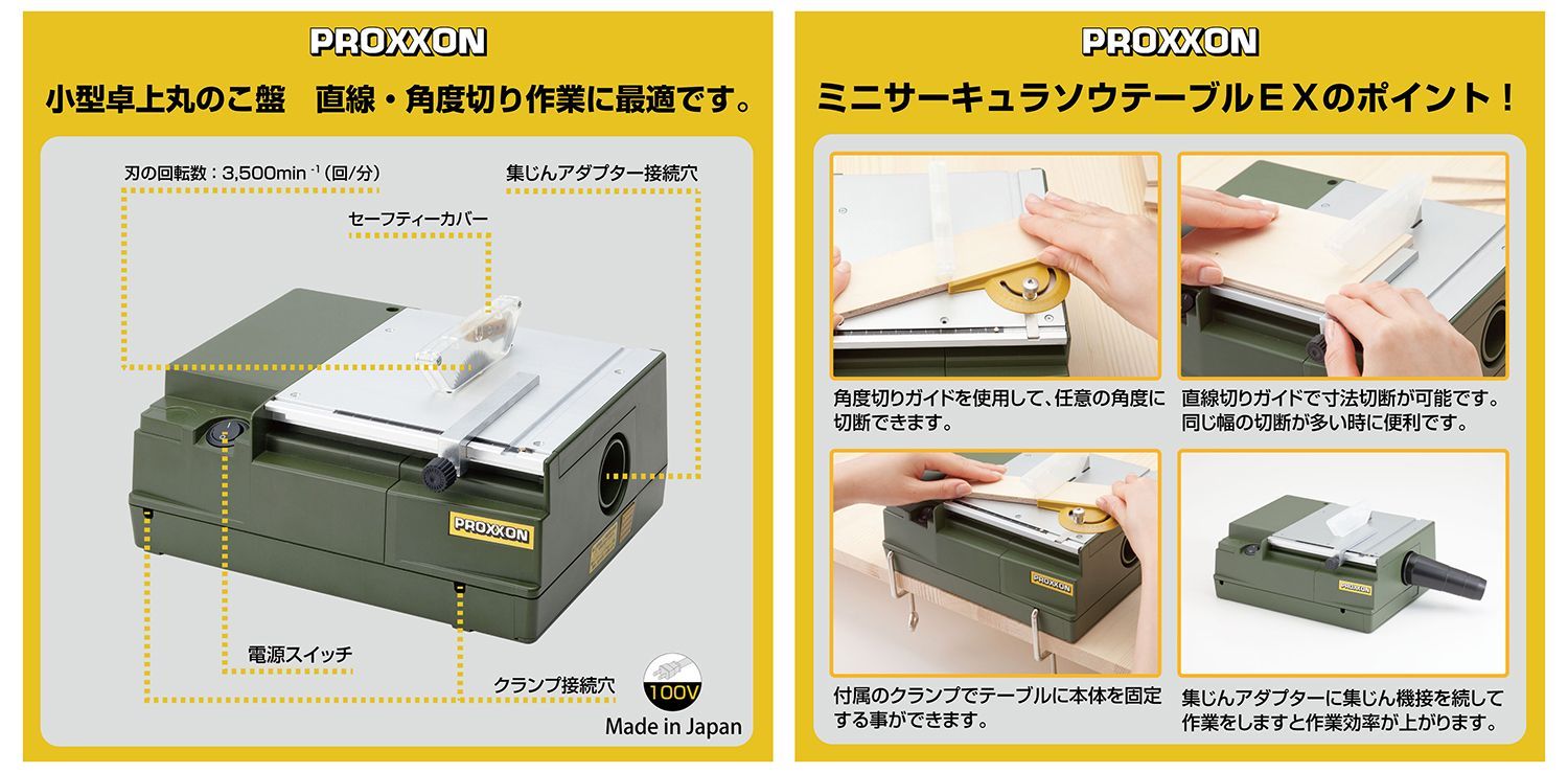 ミニサーキュラソウEX プロクソン No 27006 安全性 作業性を兼ね備え 卓上で手軽に直線切り 角度切りが行える小型卓上丸鋸盤です