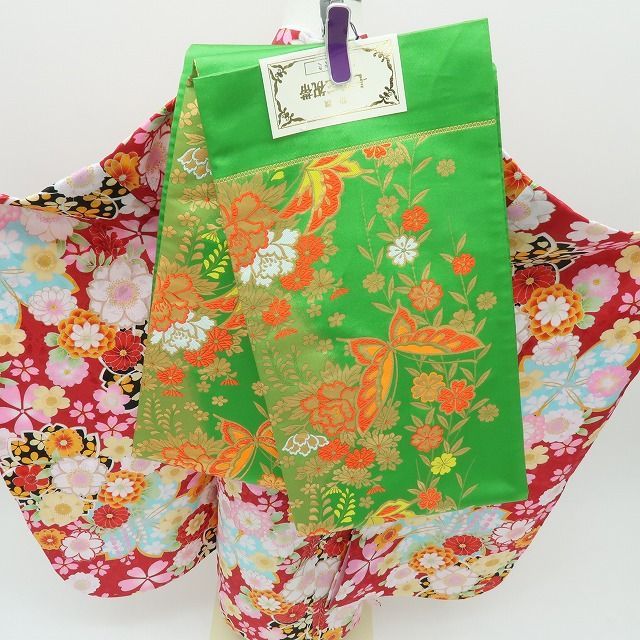 ■新品 七五三 7歳 蝶 刺繍 袋帯 着物 B8