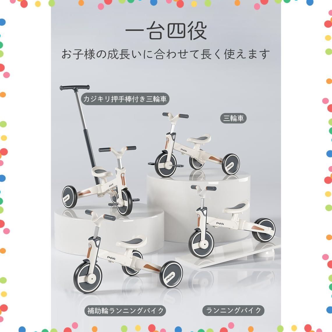 【一台四役】三輪車、カジキリ押し棒付き三輪車、ランニングバイク、補助輪ランニングバイク、4つの楽しみ方で、お子様の成長に合わせて変身できるので、長くご使用いただけます。PRO式は座席の調整が可能です。