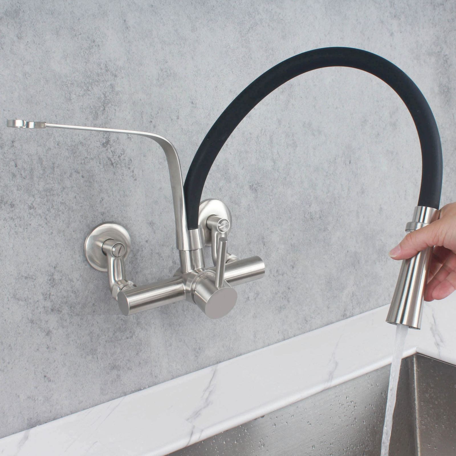 壁付きキッチン蛇口で、取り付け幅:5~25cm対応、給水管接続ねじ:G1/2