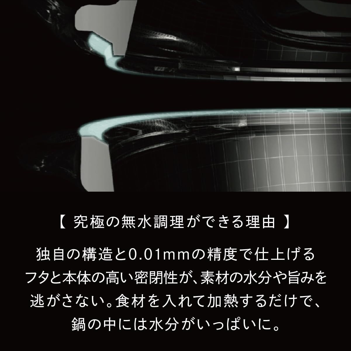 オーブンポット2ならではの調理法「無水ベイク」は、高温で食材を焼き付けながら、素材本来の旨みを閉じ込めて無水調理するだけで、 まるでオーブンで焼いたような、表面は香ばしく、一口食べると中はジューシーな旨みが溢れ出る人生最高のおいしさになります。