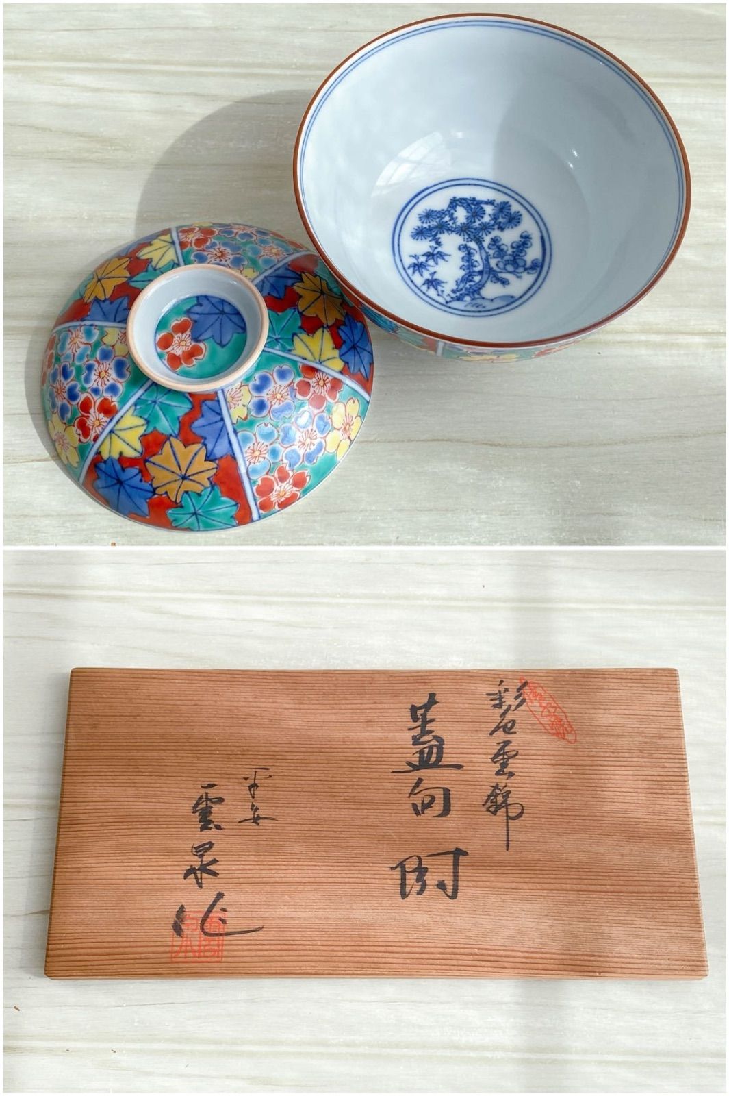 TK 130 京焼 平安雲泉 作 彩色雲錦 蓋向付 小鉢5客揃 直径約12 5 cm 共箱 陶磁器 和食器 茶道具 伝統工芸