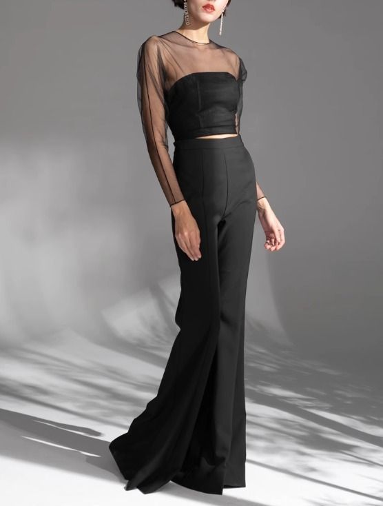 シースルー トップス ロングパンツ セットアップ パンツドレス