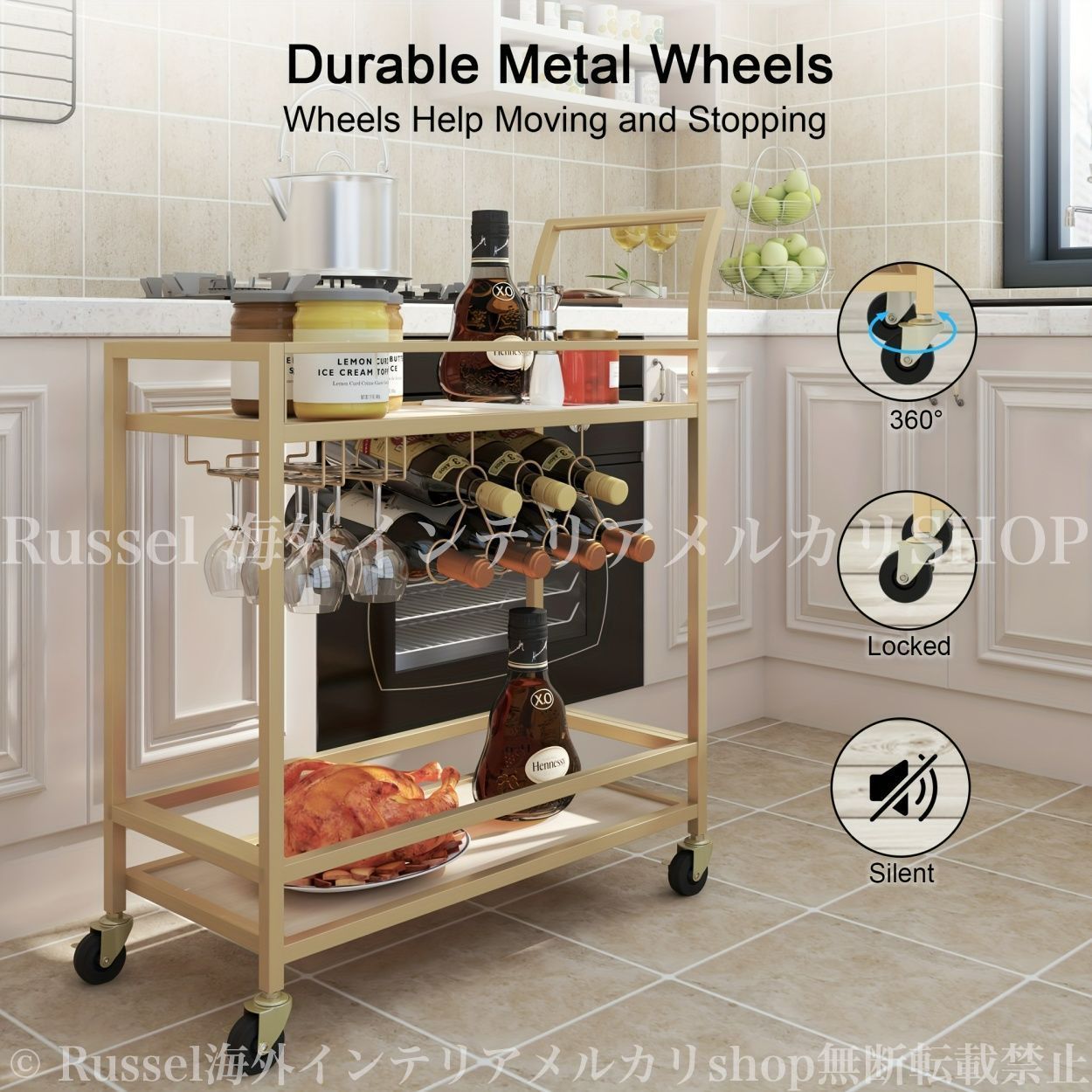 手押しカート ダイニングカート キッチンカート ワインカート 可動式 グラスホルダー 屋内 屋外 ガーデン ゴールド ブラック 金 黒 4 7