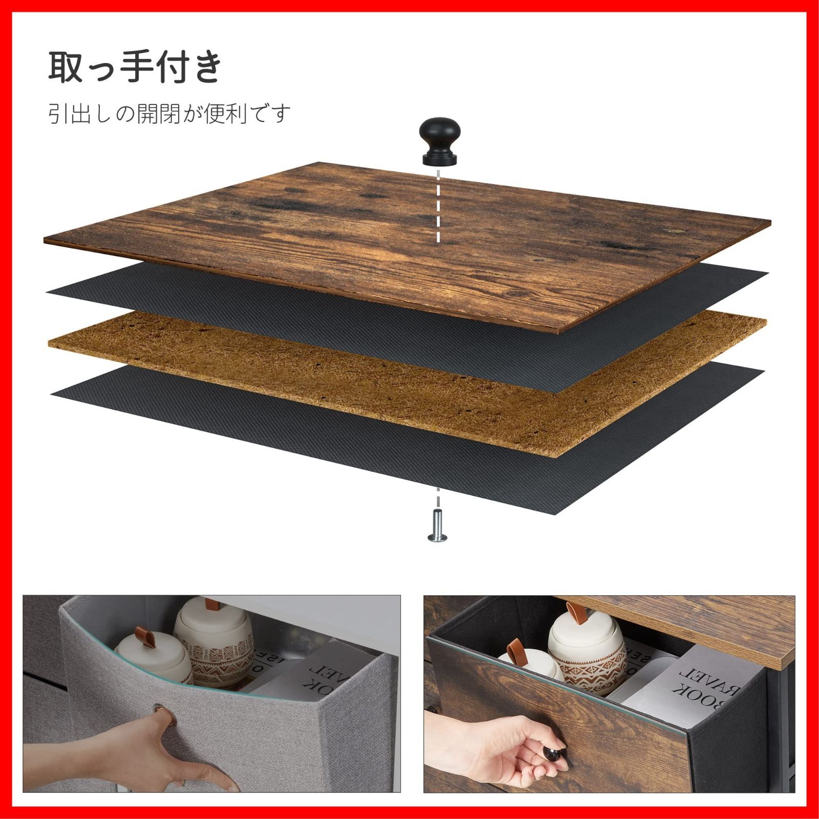 3段6杯 収納チェスト衣類収納チェスト 木製 おしゃれ ヴィンテージ風 タンス オシャレ 布製引き出し キャビネット 衣類収納 リビング収納 低ホルム 組立簡単 幅80 奥行30 高さ71 cm LGS 23 H