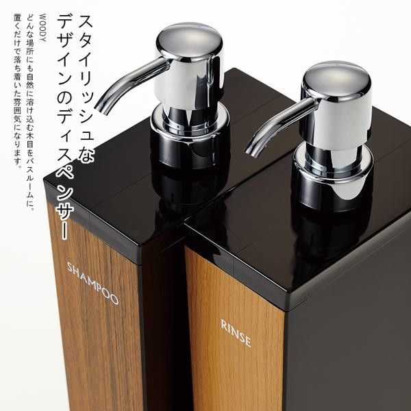 WOODY ウッディ ディスペンサー詰め替えボトル3本セット シャンプー リンス ボディソープ 長角型 700 ml 黒 ウォルナット