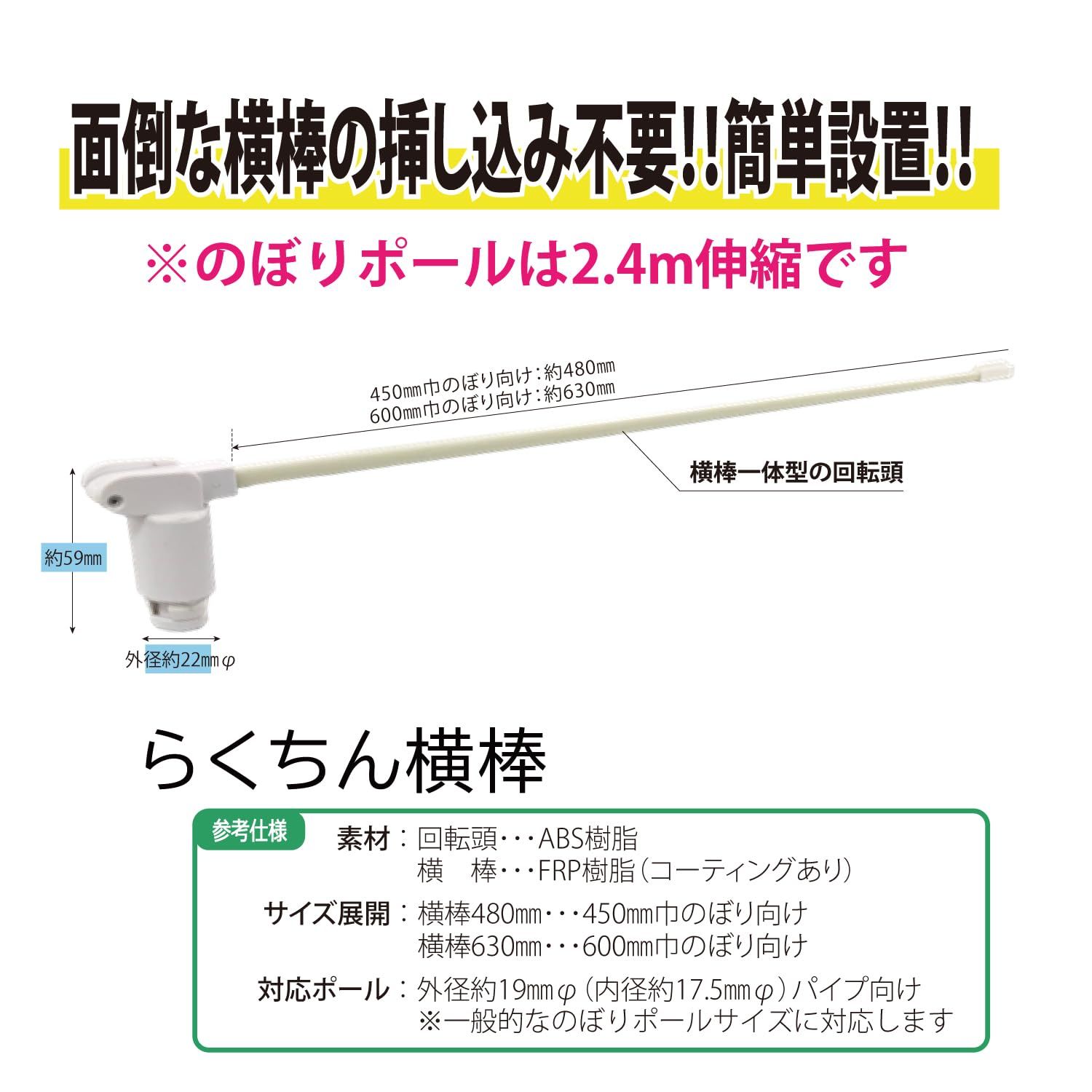楽ちん横棒部分材質:回転頭部分 ABS樹脂/横棒部分 FRP樹脂(コーティングあり)