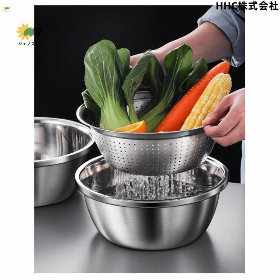 点セット ステンレスボウル 野菜カッター in スライサー&おろし金 千切り 水切り スライサー 米とぎ 調理器具セット 野菜 果物洗