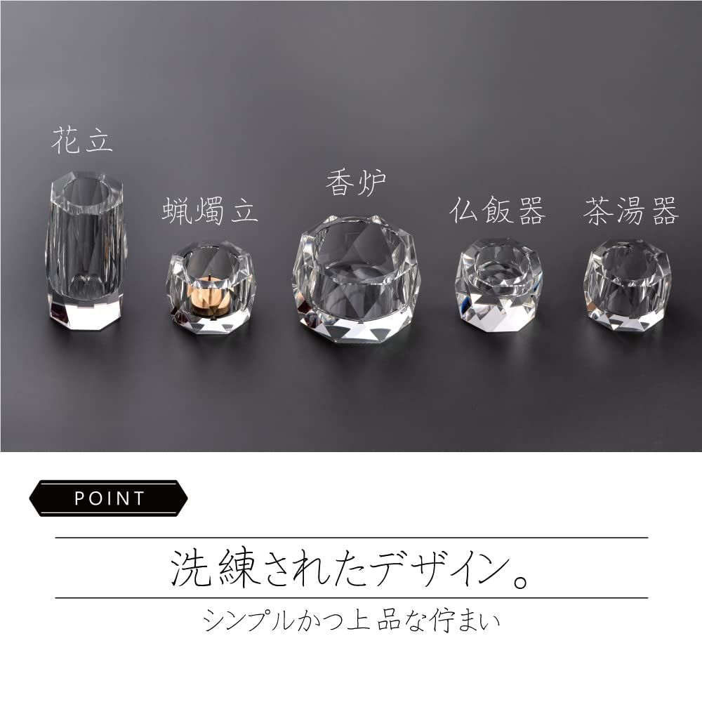 クリスタル仏具:香炉、花立、仏飯器、茶湯器、蝋燭立て、線香立て 2.5寸