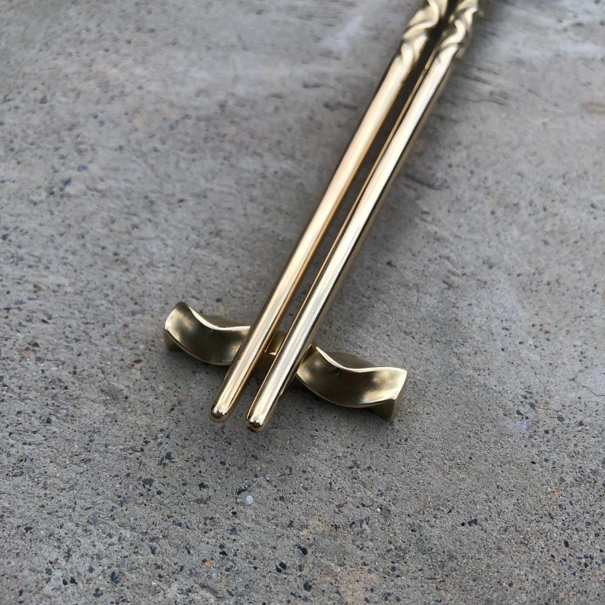 brass curved pattern chop sticks rest set お箸と箸置き