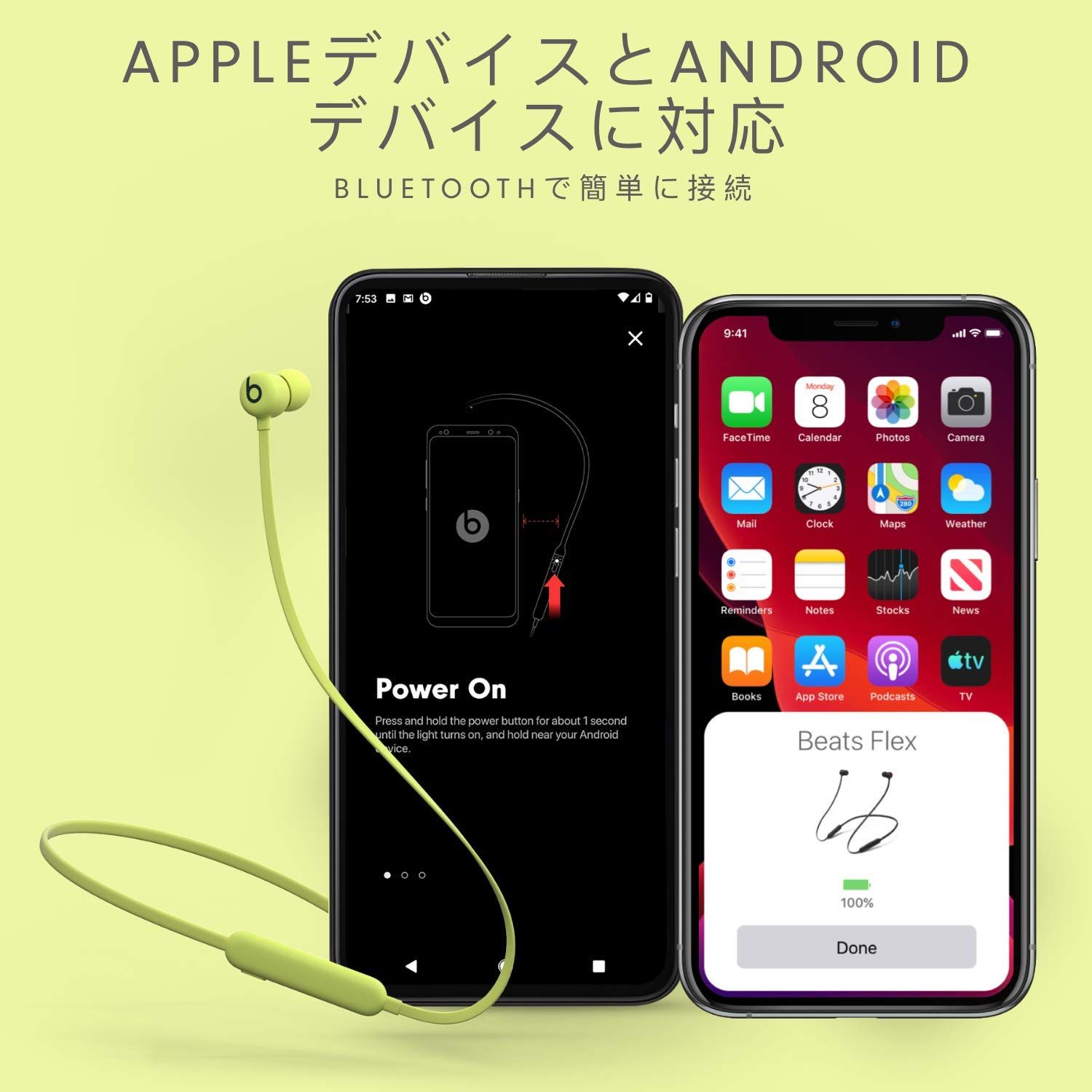 オーディオ共有を使って、Beats FlexとほかのBeatsヘッドフォンやAirPodsでオーディオをワイヤレスに共有