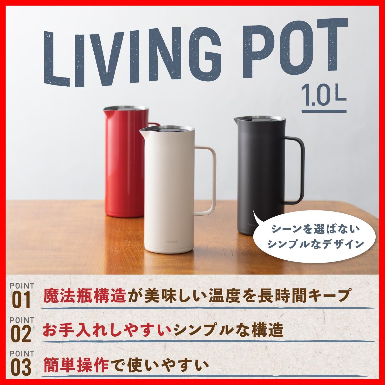 保温 保冷 真空断熱 広口 1 L ウォーターサーバー ポット 1リットル ステンレス 卓上ポット 保温ポット ホワイト AHW 100 ピーコック W