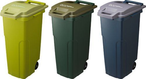 本体・フタ・フタロック・ポリ袋止め・ホイール・ハンドル:ポリプロピレン、排水栓・重りカバー:ポリエチレン、フタパッキン:発砲ポリエチレン、ワッシャー・ネジ・重り・車輪軸:鋼(スチール)、タイヤ:エラストマー