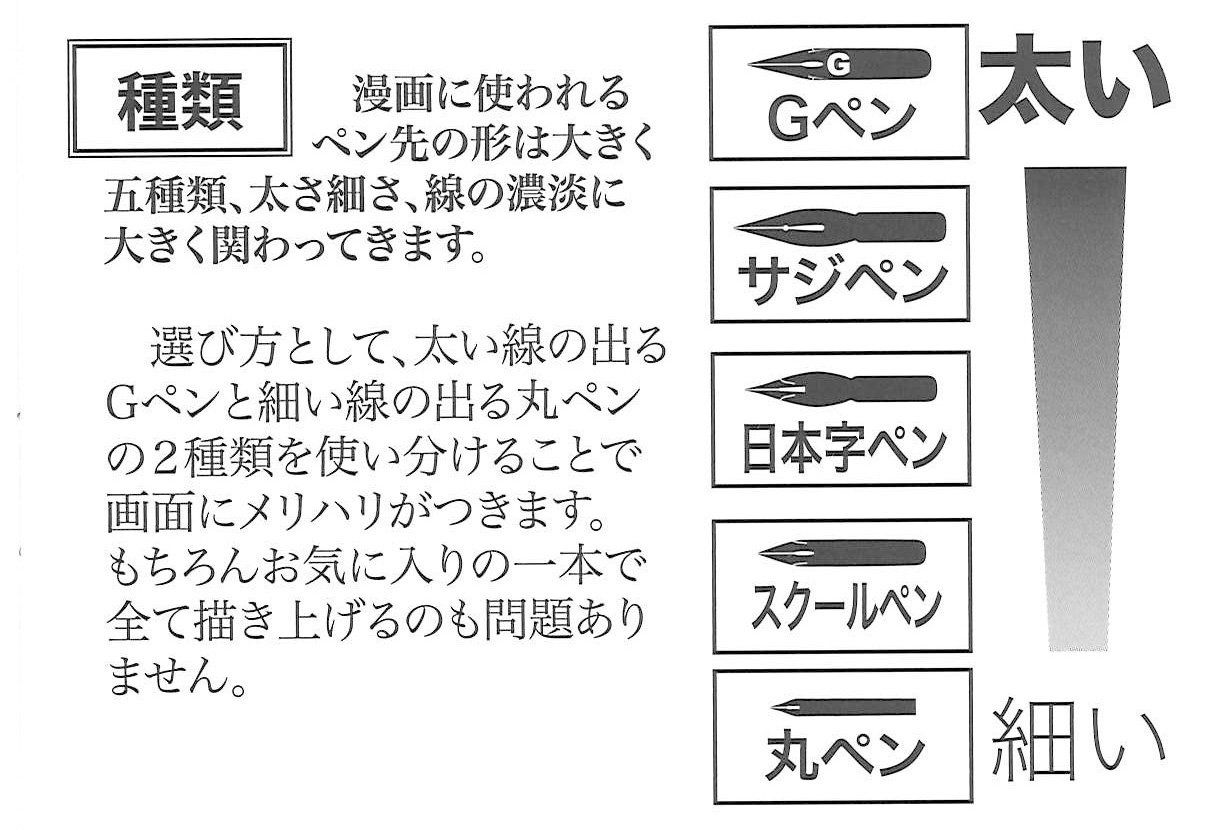 引っ掛かりが少なく、最も細い線が書け、当社の丸ペンよりも更に強弱が付けられるペン先です。
