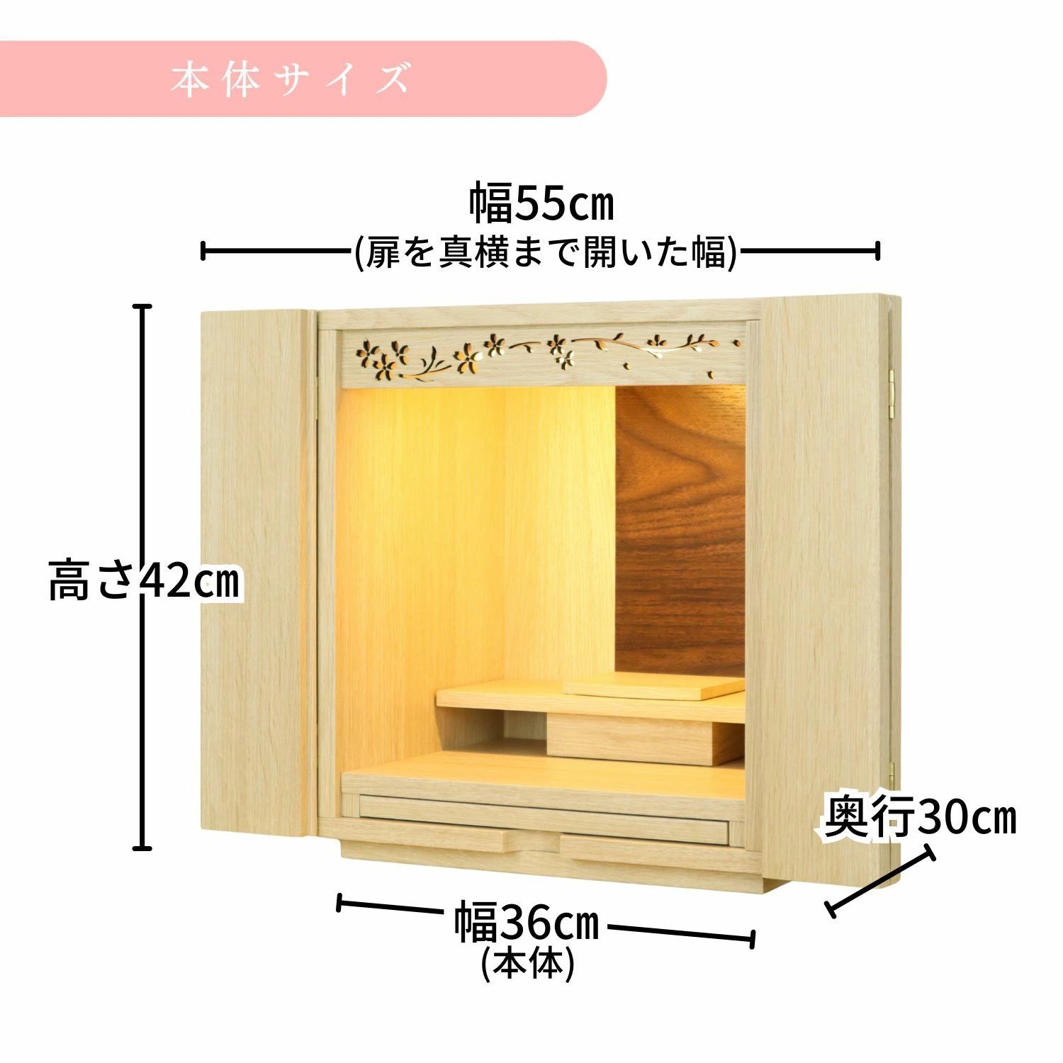 モダン仏壇 14号 桜透かし欄間 高さ42 幅36 奥行き30 cm 3 桜調 ナチュラル調 ウォールナット調 デザイン おしゃれ シンプル 家具調 インテリア仏壇 お彼岸 お盆 迎え火